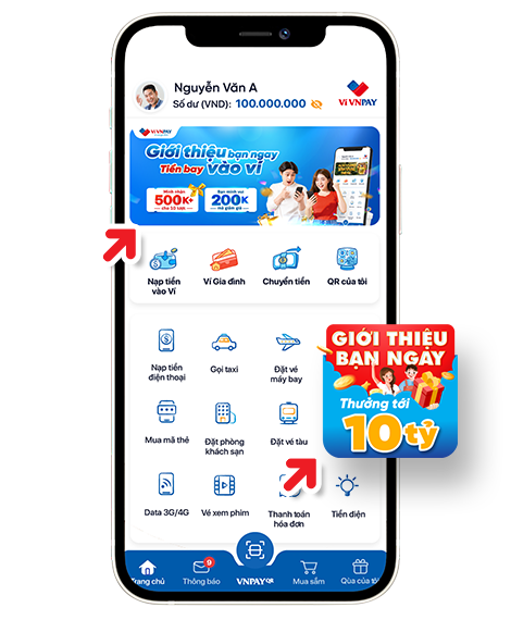 - Người giới thiệu: Các khách hàng có tài khoản Ví VNPAY (Không áp dụng cho các Ví thành viên gia đình)
