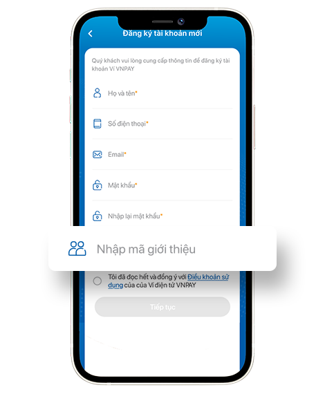 2 Hướng dẫn bạn bè Đăng ký Ví VNPAY và nhập MÃ GIỚI THIỆU (là Số điện thoại của Người giới thiệu)