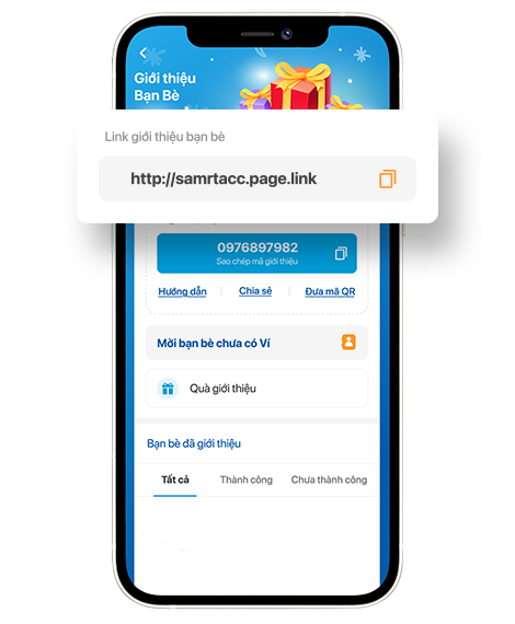 1 Cách 1: Bấm vào Biểu tượng hoặc Banner "Giới thiệu bạn" là Mã giới thiệu sẽ tự động kích hoạt
