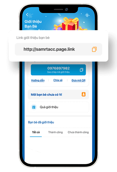 Thực hiện bước này, GÓI QUÀ TẶNG 200.000đ cho Bạn bè sẽ được kích hoạt, đồng thời Người giới thiệu sẽ nhận được 20.000đ