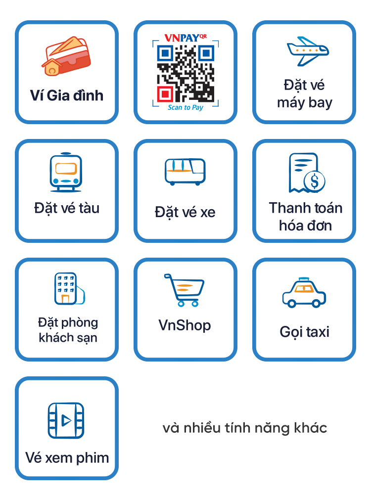 Trên các ứng dụng Mobile Banking, VNPAY phát triển các tiện ích đa dạng như: chuyển khoản, nạp tiền điện thoại, thanh toán hóa đơn, mua vé xem phim, mua vé máy bay, đặt vé tàu/xe khách, thanh toán QR Pay, mua sắm trực tuyến... Đặc biệt, hình thức thanh toán qua mã VNPAY-QR cuối năm 2020 đã vinh dự trở thành Thương hiệu Quốc gia.